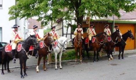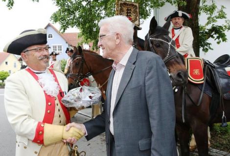 Als weiterer Traditionsverein, zur Pflege heimatlicher Kultur, Brauchtums und Kameradschaft, ließen es sich auch die Hohenzollern-Kürassier nicht nehmen, ihrem langjährigen Fördermitglied Kretschmann, mit Standarte und herausgeputzten Pferden zum 70-er, ihre Referenz zu erweisen.
