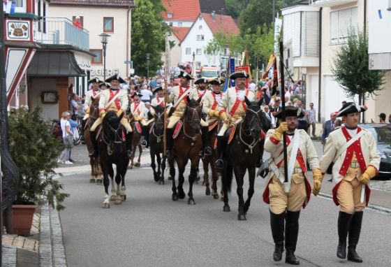 Seinen erst zweiten Einsatz hatte dabei Kadett Johannes Herre aus Gammertingen, erstmalig mit dabei war Josef Heinzelmann aus Herbertingen. Beide habe ihre Feuertaufe bestens bestanden. Immerhin war der in den Festzug integrierte Massenchor inmitten der großen Musikerschaar eine echte Herausforderung für Pferd und Reiter.